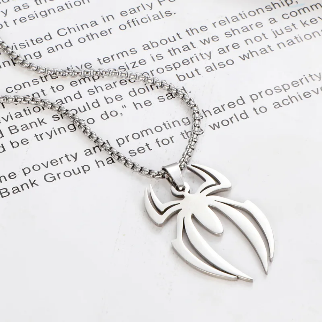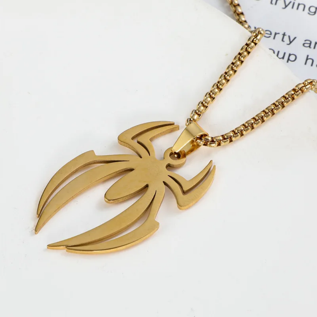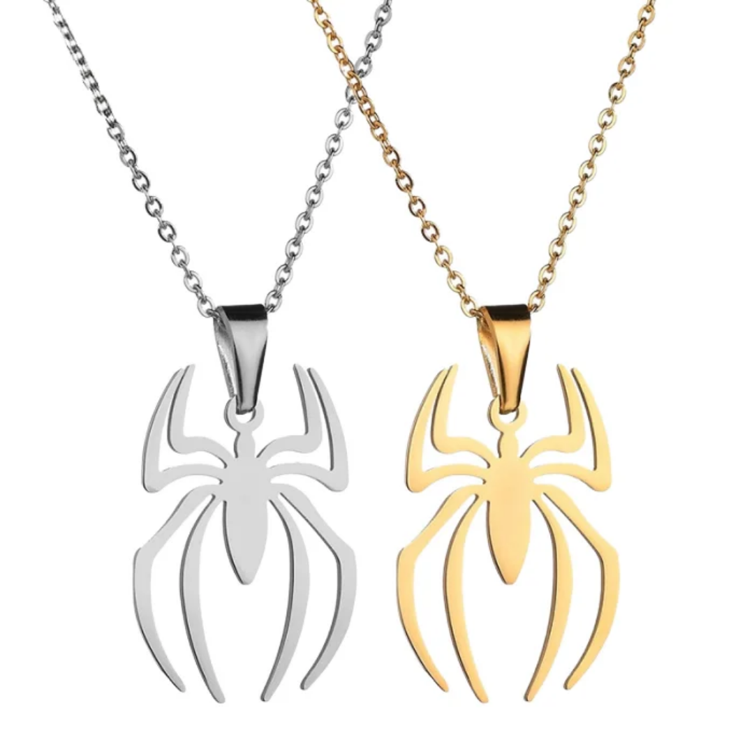 Spider pendant necklace with sleek, modern design—available in multiple finishes including gold, silver, and black. A bold accessory for standout style.