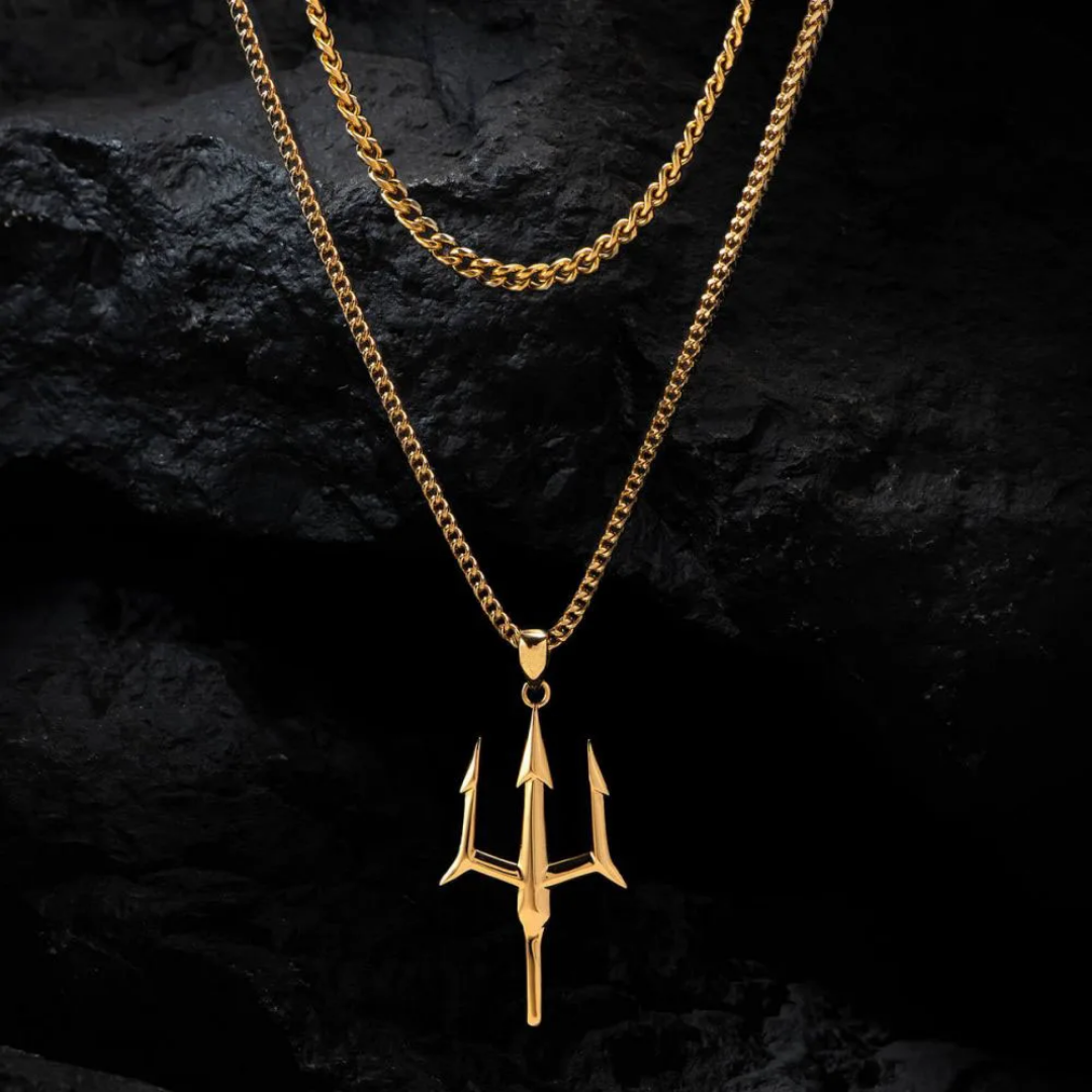 Gold chain necklace featuring a bold trident pendant—crafted for standout style and symbolic edge.